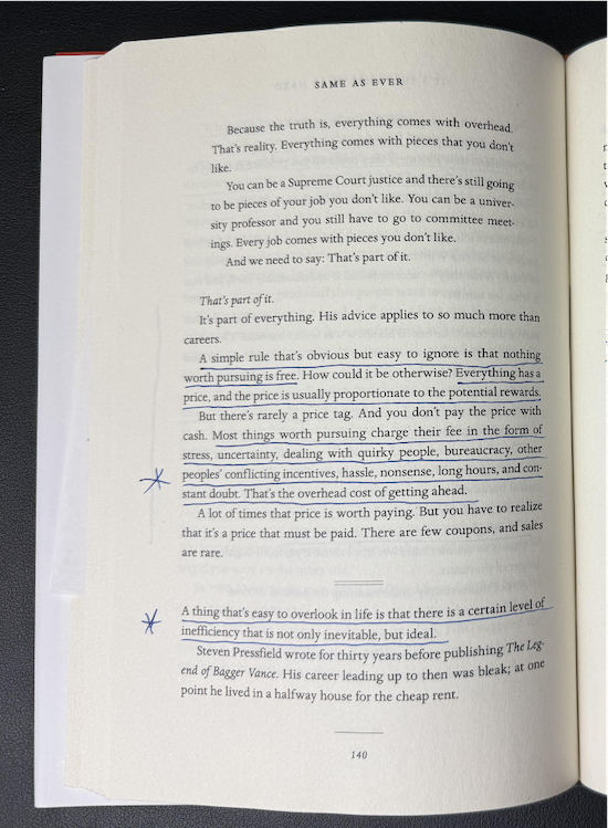 Same as Ever is a reminder that progress always comes with friction. Every meaningful pursuit has an “overhead cost”—stress, uncertainty, inefficiency, and inconvenience. The challenge isn’t eliminating these costs; it’s learning how much of them to accept so you can keep moving forward. Another great book from Morgan Housel. Check it out.